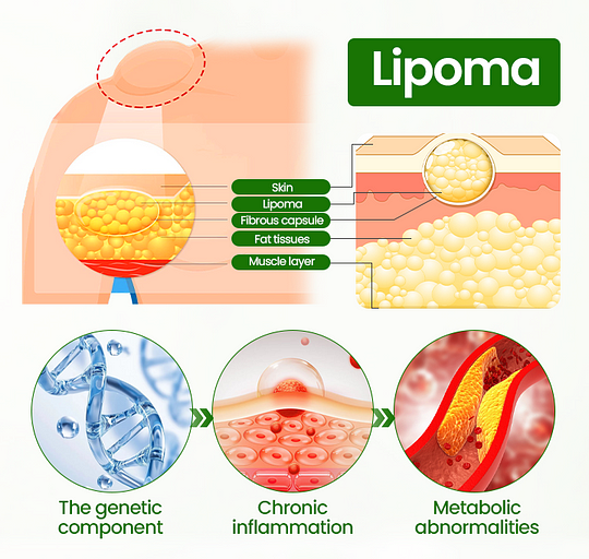 As lipomas grow. they can compress surrounding veins and disrupt blood flow. This formula helps relax tissue tension and support healthy circulation. relieving discomfort caused by restricted flow or localized pressure.