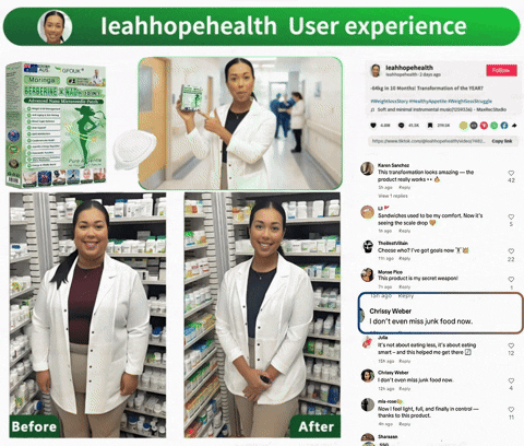 From day one, I saw real changes: regulated appetite, slower gastric emptying, improved fat utilization, and restored healthy energy expenditure. Within a week, my late-night cravings vanished, and workday energy crashes stopped entirely. By month two, my waistline shrank, energy and mood stabilized, and the fatigue and constant food cravings that once dominated my days were nearly gone.What truly surprised me, though, was my skin. Throughout the entire weight-loss process, my skin remained firm and elastic—something I had never experienced with injectable or capsule-based weight-loss products in the past. Today, I feel healthier, lighter, and more in control of my body and my life than ever before.”—leahhopehealth, Pharmacist